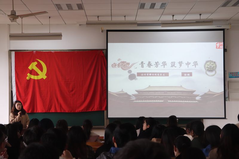 活动第三环节,徐璐老师以“同心共筑中国梦”这主题,阐述了我国目前的国情,同时强调了生产力的重要性,并提出了“回顾过往初心”和“青年兴则国家兴”等话题,表明了党对青年群体的重视,且对同学们提出了殷切的希望。