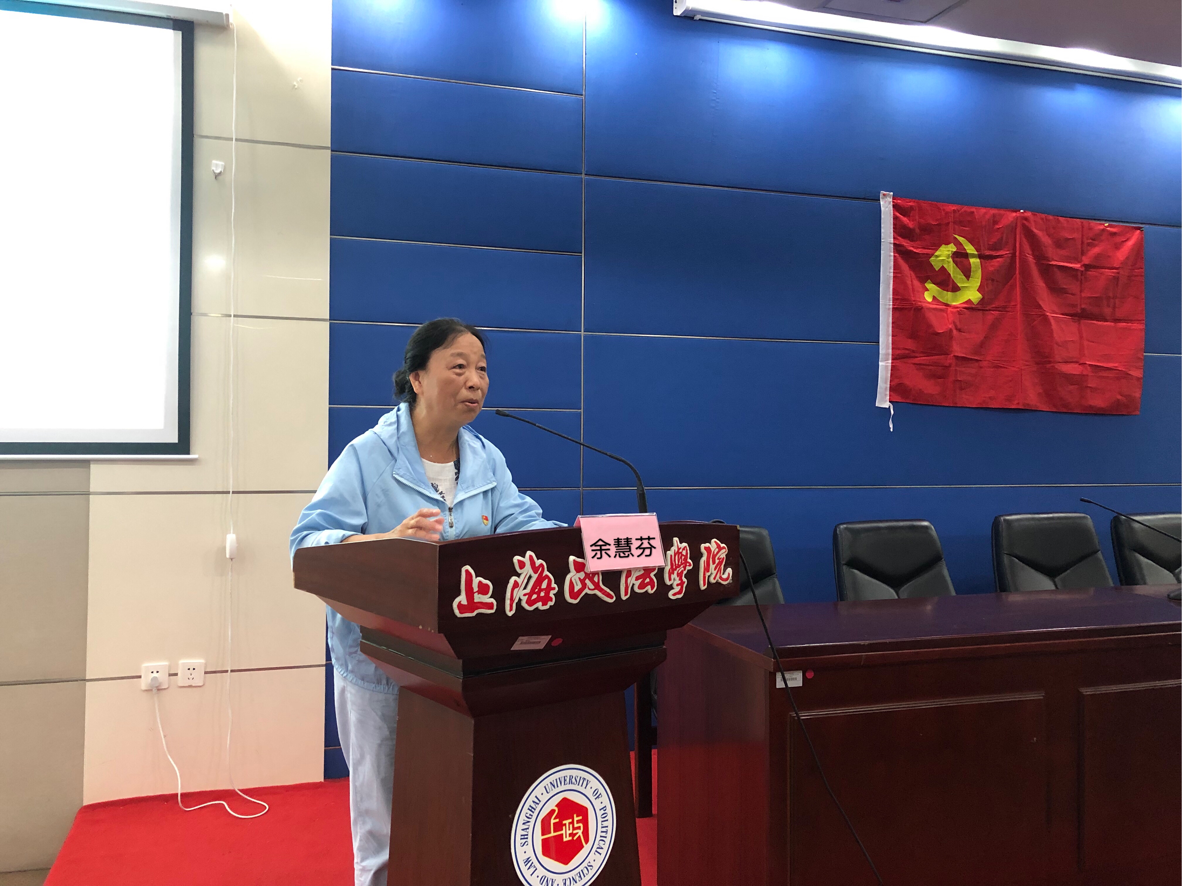 随后,由佘山镇社区党校讲师余慧芬老师给全体毕业生党员上离校前的最后一次主题党课。本次党课主题为“不忘初心,牢记使命”,余慧芬老师在和毕业党员交流心得体会的过程中回忆了早年在安徽入党的艰苦岁月,几度落泪,从中也体现了她作为党员如何用心做好每一件事,践行自己的党员身份。而在加拿大移民的期间让她感受到国外虽好,但都没祖国来的亲切,也教导毕业党员不论今后身处何方都不要忘记自己是中国人。回国后从事的各种社区工作的故事更是警醒着在座的毕业党员们,党员应为群众办事,肩负起自己身上的责任。她表示党员的先锋模范作用是体现在生活和工作的点滴中,所以党员要时时刻刻记住自己的党员身份,以集体事物为先、以人民利益为要,发扬奉献精神,起好带头作用,时时用自己的言行举止来提现自己的党员身份。最后,余慧芬老师强调党员要在党的十九大精神的引领下,不忘初心,牢记使命,砥砺前行。