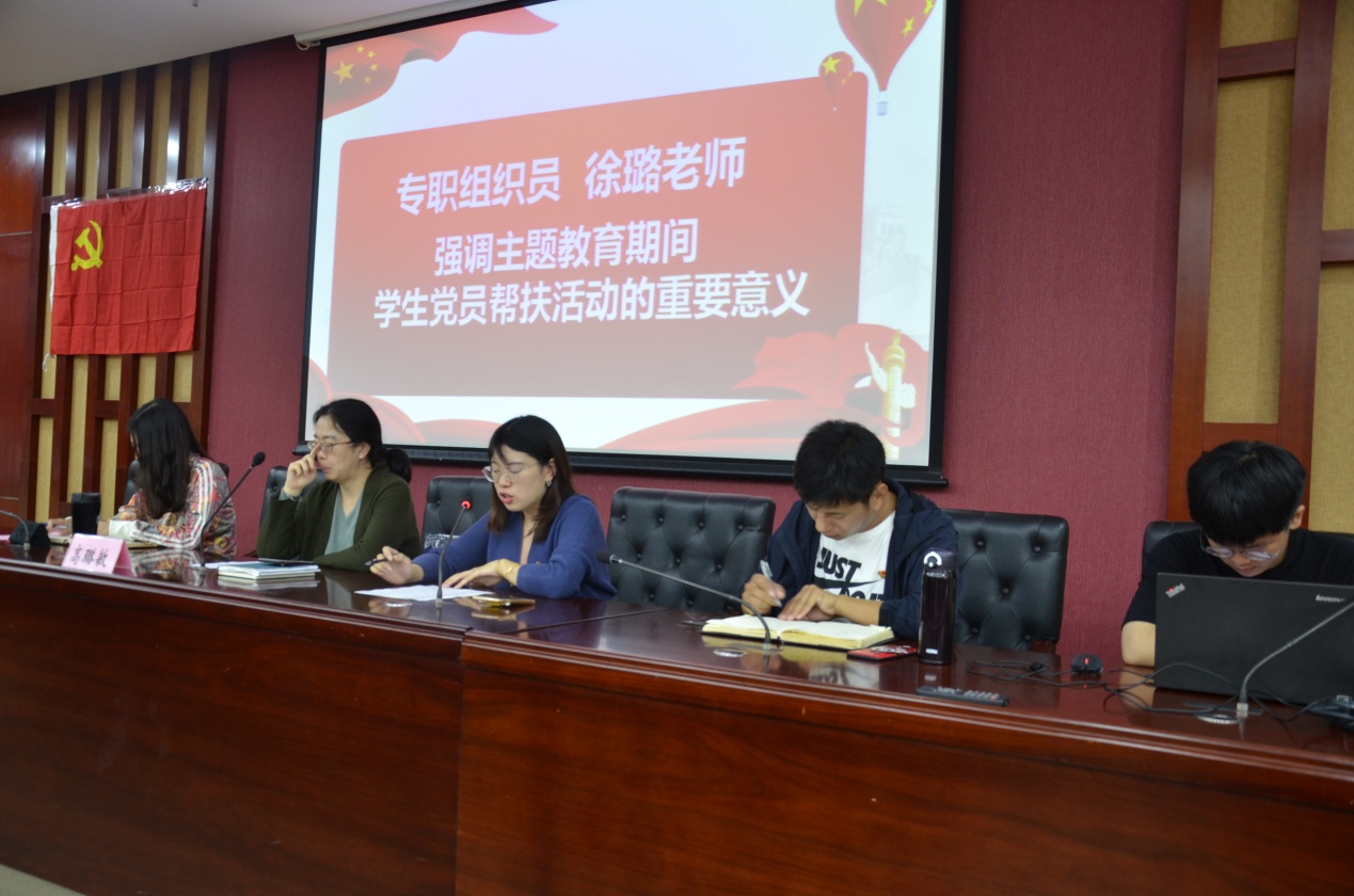 接着由专职组织员徐璐老师强调主题教育期间学生党员帮扶活动的重要意义。她指出学生党员应当发挥党在全体同学中的先锋作用,真正做到“吃苦在前,享受在后”。此次帮扶活动实质上是双方获益的活动:学生党员能在此过程中提高自己的组织性以及服务能力与水平,学困生们能提高自己的学习成绩,一举两得。