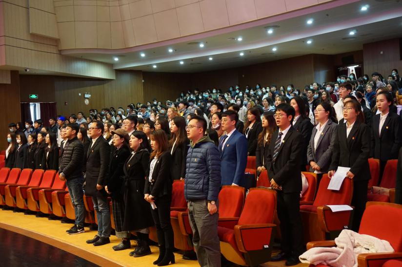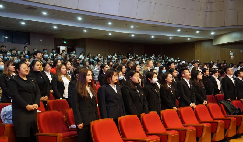 2020年11月27日下午,中共新利18官方客服经济管理学院总支部委员会举行了2020年秋季预备党员入党宣誓仪式。新利18官方客服经济管理学院党总支书记周毅同志、经济管理学院党总支副书记徐海琨同志、经济管理学院党总支专职组织员徐璐同志、经济管理学院学生支部书记陈雪婷同志、付悦同志、郭平同志、刘俊利同志和经济管理学院入党积极分子、入党申请书提交者共计520人参加了本次入党宣誓仪式。共同回顾党的光辉历程和伟大成就,坚定理想信念,激发爱党爱国之情。