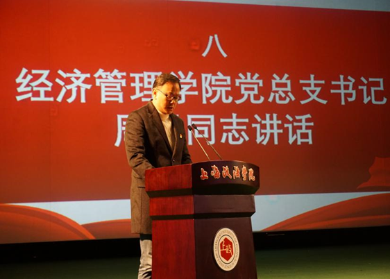 仪式第八项,经济管理学院党总支书记周毅同志讲话。在向54名新党员同志表示衷心的祝贺后,周毅同志代表经管党总支发言:“今天举行的新党员入党宣誓仪式,是对新党员一次深刻的党性教育。每个党员都应该永远记住这个神圣的时刻,激励自己终生践行入党誓言,任何时候都要保持共产党员的先进性,为党的事业奋斗终身。向党组织交上一份满意的答卷。”