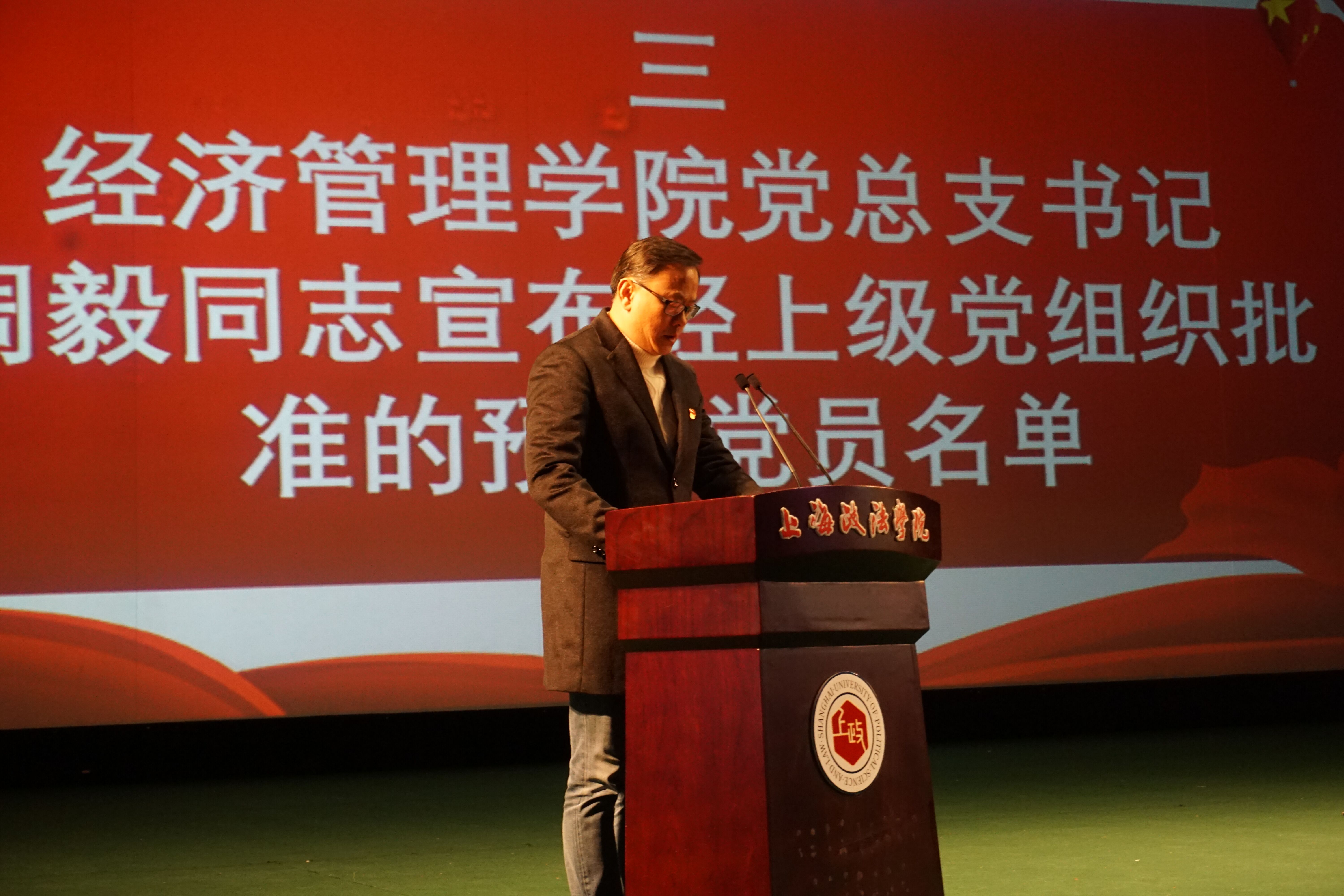 仪式第三项,由经济管理学院党总支书记周毅同志宣读经上级党组织批准的预备党员名单。