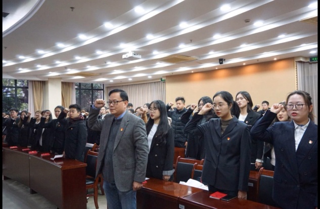 1月5日下午,经济管理学院2020年下半年预备党员入党宣誓仪式在综合中心107举行。经济管理学院党总支书记周毅、党总支副书记徐海琨、专职组织员徐璐、学生党支部书记陈雪婷、付悦、党支部副书记覃煜、学生党建中心主任胡涬和2020年下半年发展的全体预备党员参与了本次入党宣誓仪式。