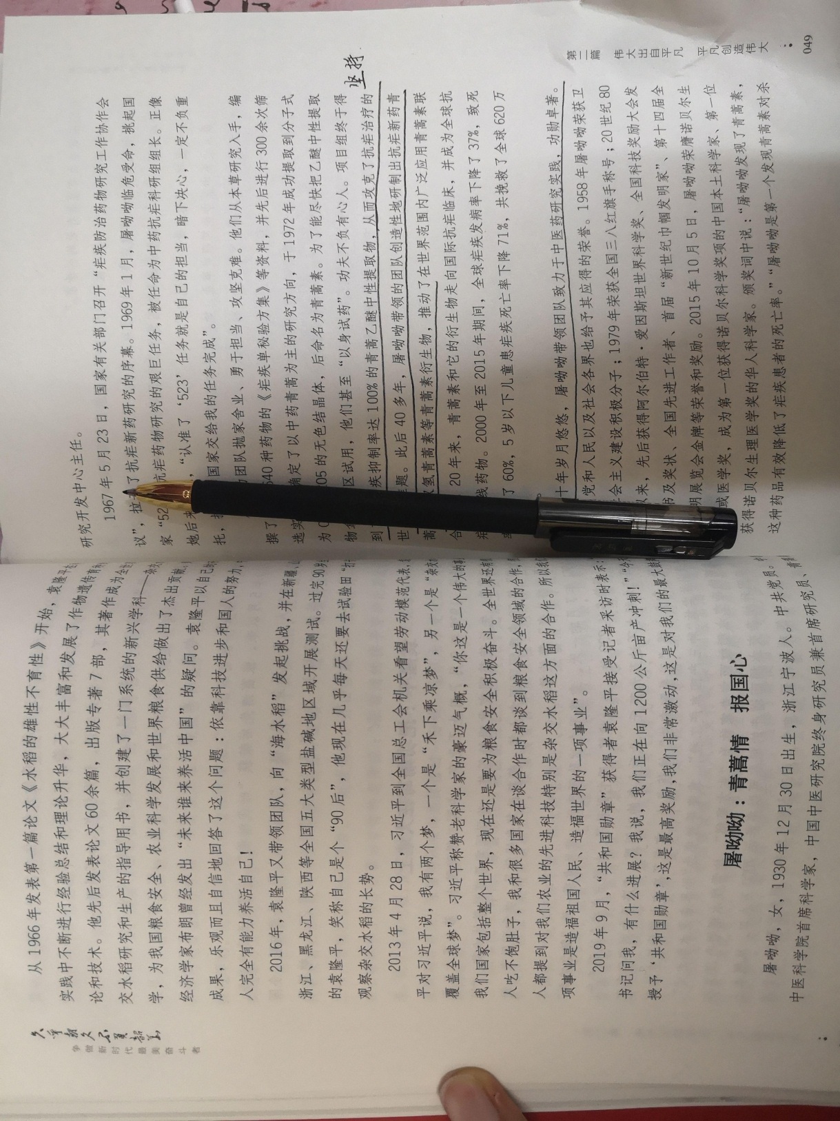 读书笔记: 这段时间我阅读了,周丽江和栾淑颖老师编写的《只争朝夕,不负韶华》一书,我明白了奋斗正视新时代精神的最美诠释。艰难困苦,玉汝于成,创业维艰,读书亦苦,奋斗以成,放眼未来,唯有只争朝夕,方能不负韶华。 书中介绍了为祖国奉献一生的于敏先生,县委书记的好榜样焦裕禄同志,牢记党的话温暖群众心的廖俊波同志,书写忠诚的边疆卫士艾热提·马木提。他们或许是人民公仆交出让人民满意的答卷,或是忠于职守,隐姓埋名,干惊天动地的大事,也许他们的经历不同但是他们为党为祖国奉献的心是相同的。但其中我印象最深刻的还是屠呦呦女士,一份青蒿情,一份爱国心,她让我看到了,我们中华文化的博大精深更让我理解了一位医药工作人员对自己职业的尊重与坚持,让我意识到我们未来自己的梦想也应该有坚持不懈的精神,热爱自己的祖国,热爱自己的职业,并且对生命对科学保留一份敬畏与尊重。 以上就是我这次阅读的读书笔记。