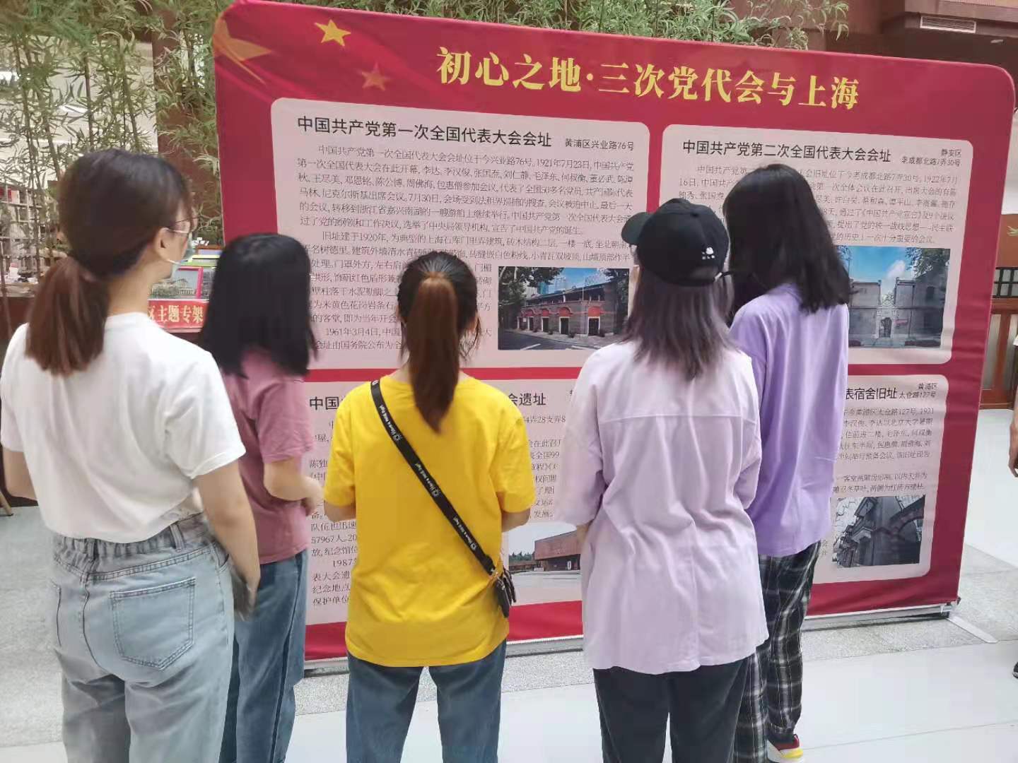为庆祝中国共产党成立100周年,由上海市文物保护研究中心、上海旅游高等专科学校、上海师范大学旅游学院、上海音像资料馆共同主办的2021年红色文化遗产进校园系列活动之上海红色文化遗产进校园图片巡展,正在我校图书馆一楼大厅举行。