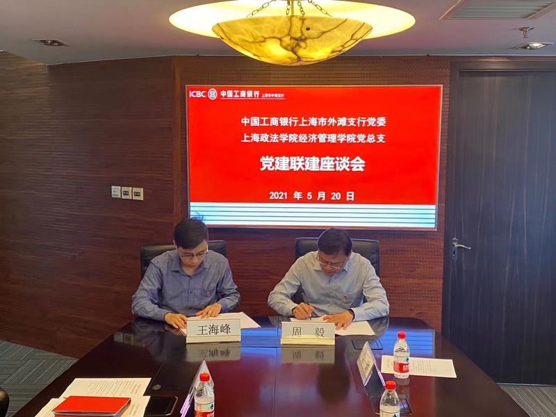 为进一步推进党的建设,积极探索党建创新工作,推动校银合作跃上新的台阶,5月20日,经济管理学院党总支书记周毅、党总支副书记徐海琨、上政第26学生党支部书记江帆、专职组织员徐璐一行赴工商银行外滩支行开展党建联建活动。工商银行外滩支行党委委员、副行长王海峰,党委委员、纪委书记方戎,个金部总经理陈锡钧,营业厅主任陈艳,内控管理部经理吴健成等出席了此次党建联建活动。