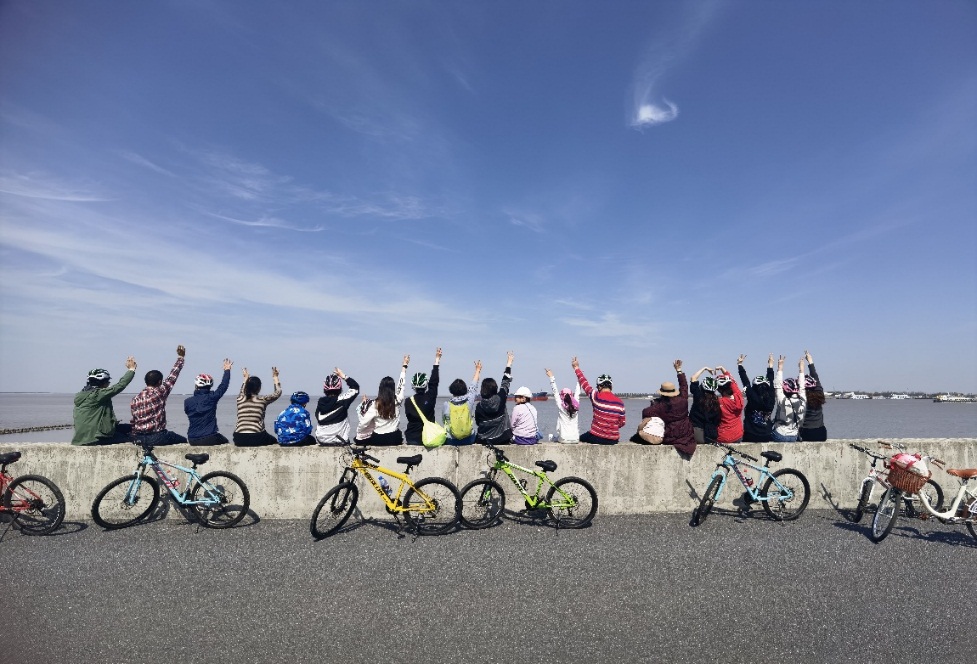 在既好吃又有趣的烧烤之后,大家开始沿岛骑行,纵看东海长江交汇、还有成排高大的水杉林和电力发电机,一望无际的田园风光,无论是沿路清新的空气,还是怡人的风景,都让大家身心愉悦。