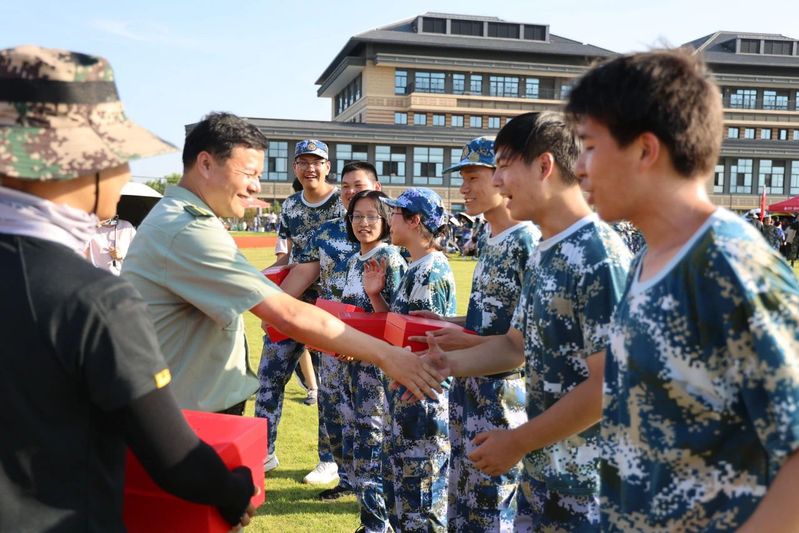 希望同学们能在军训的最后关头,在未来的学习中,继续发扬敢闯敢拼、勇争第一的精神,继续迎风而上,取得更多佳果,为自己争光,为学院添光添彩!