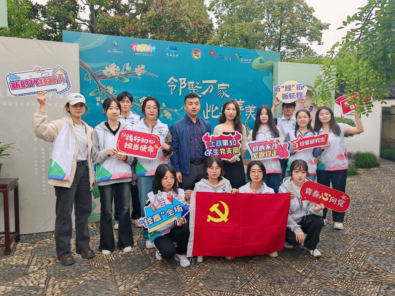 为更好地践行党的二十大精神,持续推动主题教育扎实开展,加强校社联动,切实为群众办好实事。近日,经济管理学院上政第30学生党支部组织师生党员、团员青年前往青浦区盈浦街道,开展“邻聚万家·此最善美”社区邻里文化节志愿服务活动,充分发挥党组织的战斗堡垒作用,展现了上政学子风采,为弘扬传统文化、提升居民人文素养贡献了青年力量。经济管理学院党委副书记丁明强、上政第30学生党支部书记孔令媛带队,师生一行14人,为本次“邻里文化节”的成功举办提供了有力的志愿服务保障。