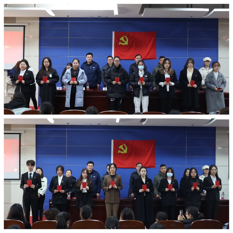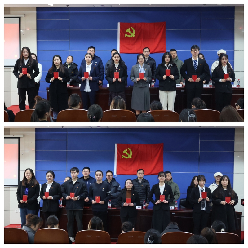 2023年12月29日下午,经济管理学院党委在庸夫楼112举办“筑梦扬帆启新程,矢志奋斗谱新篇”为主题的2023年下半年全体新发展党员入党宣誓仪式。经济管理学院党委书记周毅、党委副书记丁明强及各学生党支部书记出席了此次活动,仪式由徐璐主持。
