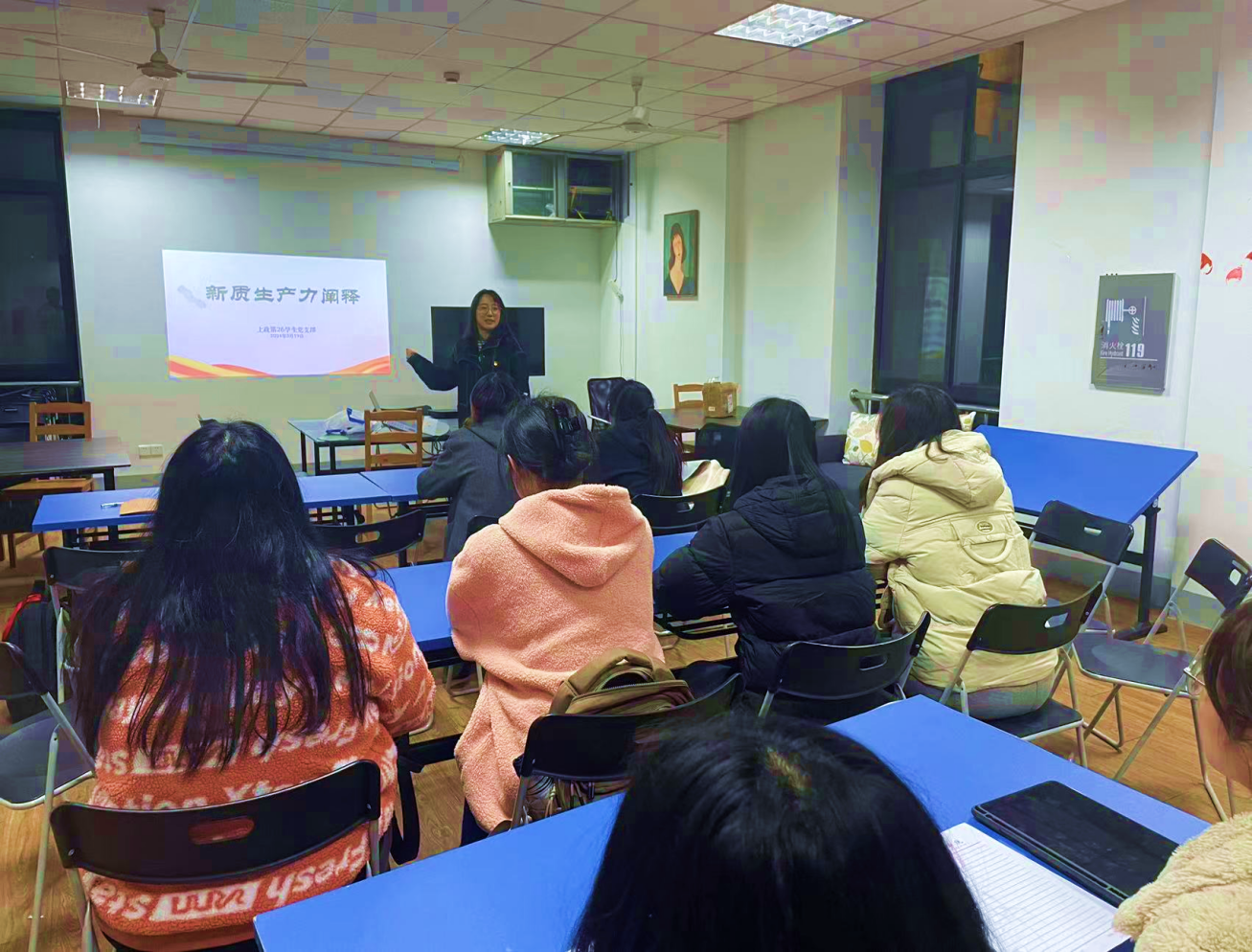 为深入开展学习贯彻习近平新时代中国特色社会主义思想主题教育,深化学生党员对生产力发展规律的认识,领悟习近平经济思想内涵。上政第26学生党支部于3月19日开展《新质生产力阐释——推动高质量发展的内在要求和重要着力点》专题党课学习。
