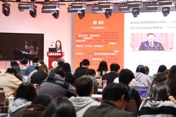 孔令媛以《从共产党的“创业史”中汲取职涯红色密码》为主题,向培训班学员开展授课。她通过回顾梳理党的“创业史”,从人和事两个维度,为大家解密分析党“创业”成功的11个“核心密码”,将党史的红色教育与学生职涯教育相结合,勉励学生应积极投身时代洪流,把握发展机遇,将个人成长与祖国需要相结合才能真正有所作为,不辜负时代与使命。