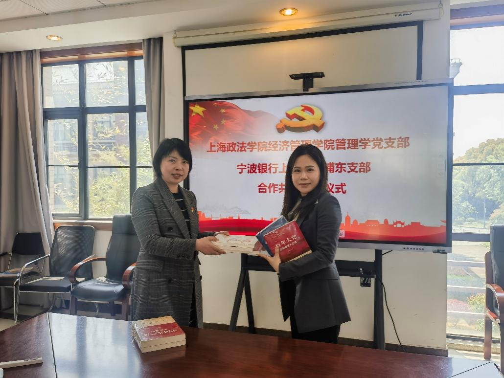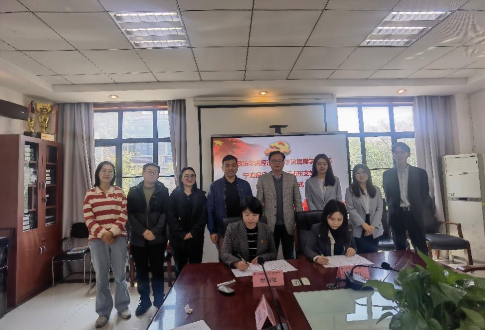 为深入学习贯彻党的二十大精神,进一步探索基层党建工作的创新发展,全面开展基层党建共建活动,努力构建 “共建聚合力、双向促提升”的工作新格局,建立常态化的党建共建机制。4月10日上午,经济管理学院管理学党支部与宁波银行浦东支行党支部进行“共建聚合力 双向促提升”党建共建签约仪式。经济管理学院党委书记周毅、宁波银行浦东支行行长章惠丁、经济管理学院党委副书记丁明强、经济管理学院管理学党支部书记程利敏、经济管理学院管理学党支部全体委员、宁波银行浦东支行党支部成员出席签约仪式。