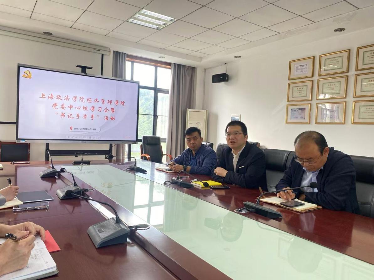 10月29日上午,经济管理学院党委在A3-201举办党委中心组(扩大会)学习会暨“书记手牵手”活动,经济管理学院党委班子成员、教工党支部书记、学生党支部书记、专职组织员参加。会议由党委书记石其宝主持。