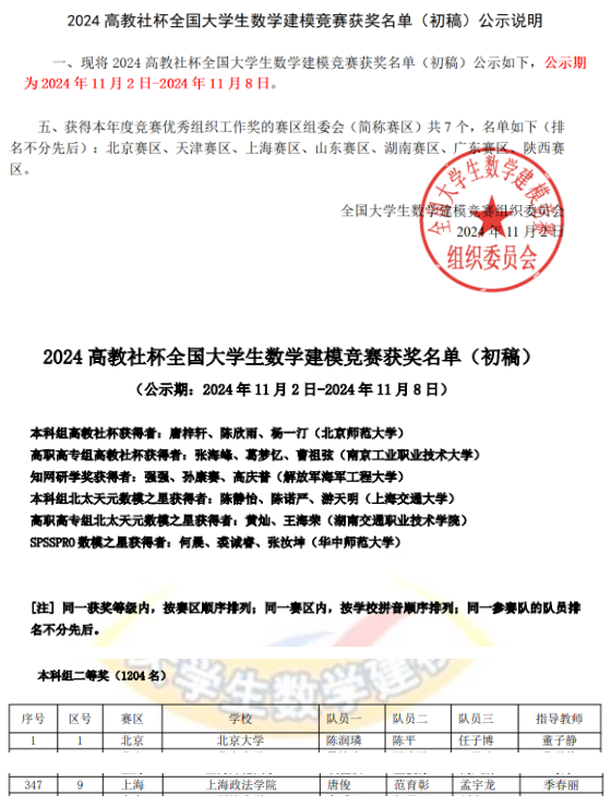 近日,由教育部高等教育司和中国工业与应用数学学会举办的全国大学生数学建模竞赛国家奖成绩公示(11月2日—11月8日)。我校经济管理学院学子唐俊、范育彰、孟宇龙(指导老师:季春丽)首次斩获全国二等奖1项。