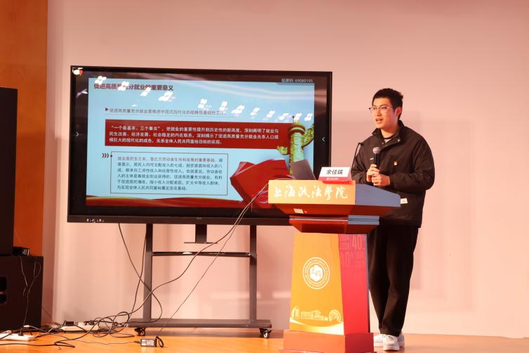 上政第27学生党支部余佳瑞同志以《实施就业优先战略 促进高质量充分就业》为主题,围绕高质量充分就业的核心要义,阐述了其深远的意义,并向学员们推介了习近平总书记关于促进高质量充分就业的重要论述。他指出,促进高质量充分就业是新时代赋予我们就业工作的全新定位和神圣使命,引导学员们深入学习《中共中央 国务院关于实施就业优先战略 促进高质量充分就业的意见》,强调就业不仅是家庭事务,更是国家大事。