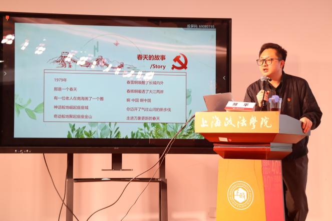 上政第28学生党支部书记郭平同志为学员们讲授了本期培训班的第一课——《重回改革年代 再讲春天的故事——讲述红歌经典〈春天的故事〉背后的党史故事》。他从“一个人的故事——歌曲词作者蒋开儒的人生经历”“一座城的故事——改革开放前沿阵地深圳的崛起历程”“一个民族和国家的故事——社会主义制度自我完善和自我发展的历史进程”三个维度,全面回顾了改革开放的光辉历程和三次伟大转折,明确指出改革开放是我们永恒的动力源泉,中国共产党引领人民开辟了具有中国特色社会主义道路,并以此鼓励学员们,无论何时都不可放弃自我提升的机遇,持之以恒的努力必将带来翻天覆地的变革。