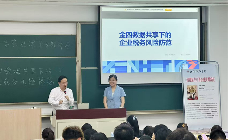 讲座中,堵鹤鸣总监立足实务,以外卖、电商、快递等行业典型案例为切入点,系统解析了金税四期数据共享机制下企业面临的税收风险及应对策略。在互动环节,针对同学们提出的华为企业国际税收等专业问题,堵总监给予了细致解答,并分享了税务领域的学习方法与职业发展建议,为学子们提供了宝贵的职场指引。