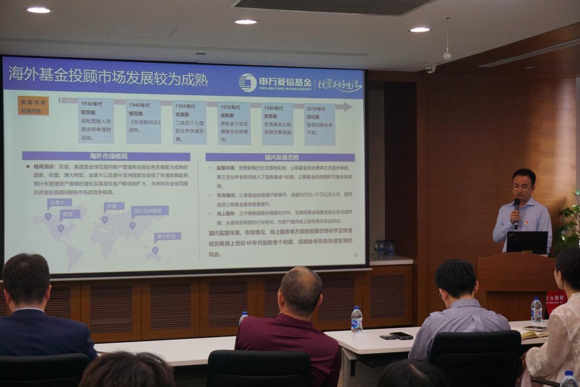 在党建与企业参访交流会上,申万菱信基金管理有限公司代表深入探讨了海外基金投顾市场的成熟经验,并结合国内发展态势,分享了投顾业务的前沿理念与实践成果。从资产投向、投资环节、推介环节到客户获得感,投顾服务展现出多元化资产配置、账户级别管理以及投资顾问相结合的综合优势。申万宏源上海中山南一路营业部党支部负责人于秀倩以“走近 ETF:让投资更简单”为主题,通过详细的讲解和互动环节,向大家介绍了 ETF 的核心特点、投资优势以及多样化的投资策略。