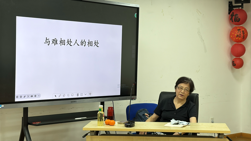 活动开场,段晓英老师并未直接进入主题,而是以“难相处”这一人际关系中普遍存在的话题展开讨论,引导教师们思考日常交往中的困境。随后,段老师结合心理学专业知识,从人的性格类型、成长背景、情绪管理等多个维度,深入剖析了导致“难相处”局面出现的内在原因。她强调,每个人都有自己独特的心理模式和行为习惯,理解并尊重这些差异是改善相处关系的关键。