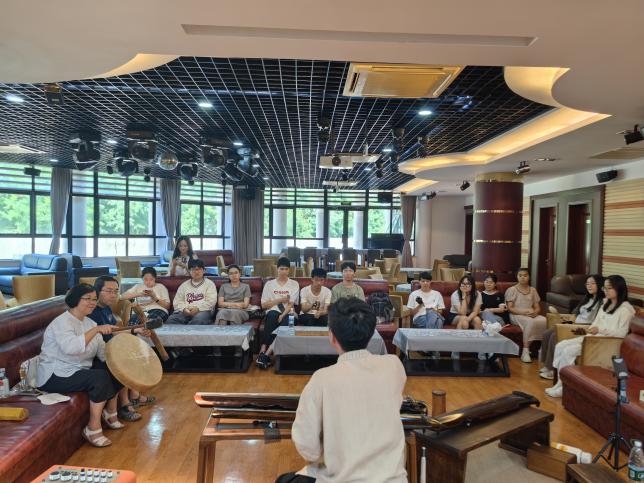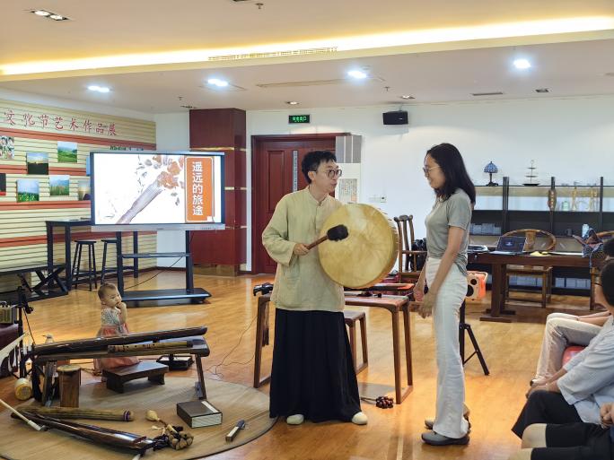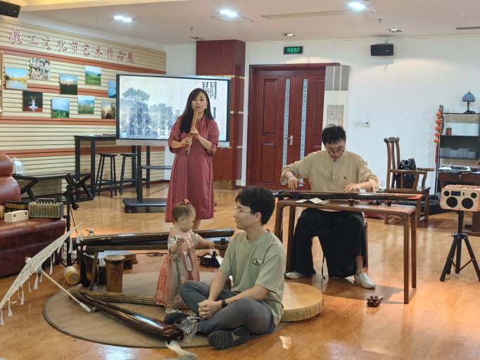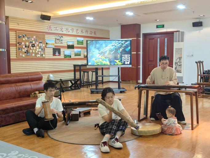 活动以多元形式打破传统讲座的边界,通过《秋风辞》《欧鹭忘机》等名曲赏析,结合琴谱解读与演奏示范,展现古琴"清微淡远"的审美特质。指导师生体验基础指法,现场弹奏《仙翁操》片段,让参与者感受"左手吟猱,右手轻重"的技法精髓。在即兴音乐环节,师生以古琴为主轴,融入笛声、吟诵等元素,创作出融合古典与现代的即兴作品,展现传统文化的创新活力。
