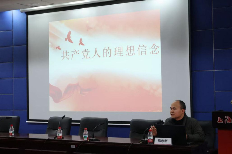 教工经济学党支部书记马忠新为学员们讲授本期培训班的第二课——《共产党人的理想信念》。他从什么是共产党人的理想信念、为什么要坚定理想信念两个方面进行深入阐释,强调理想信念是共产党人精神上的“钙”。他鼓励全体学生党员,要始终坚定理想信念,自觉增强“四个意识”、坚定“四个自信”、做到“两个维护”,牢记初心使命,筑牢信仰之基、把稳思想之舵,以实际行动践行党员责任与担当。