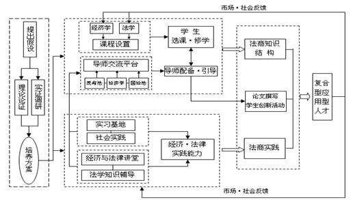 法商结合不仅是市场经济发展的需求,也是发挥我校办学特色和法学研究优势的必然选择。为了真正做到法商结合,形成我院的办学特色,我们采取了四个方面的措施(法商结合的人才培养机制具体见图1)。