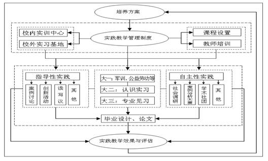 实践出真知。社会实践对培养实用型和技能型高级人才的作用是不言而喻的。为了增强实践教学,经济管理系创设了多元化实践教学体系。多元化实践教学体系由实验实训、实践实习和课题调研三部分组成。多元化实践教学体系涵盖了由入学到毕业、由课堂到课余、由院内到院外的全部过程,形成了全过程、全方位、多形式的实践教学体系(多元化实践教学体系见图2)。