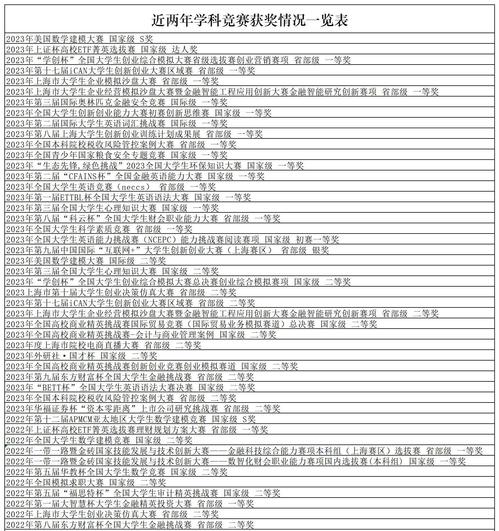 学院“以赛促教、以赛促学”教学成效显著,学生技能竞赛成果丰硕。近年来,学院学生获得“全国大学生数学建模比赛”“挑战杯全国大学生创新创业大赛”“全国外贸跟单技能大赛”“全国大学生会计信息化技能比赛”“全国大学生沙盘模拟大赛”“ICAN大学生创新创业大赛”等全国和上海市级各类赛事一、二等奖以上荣誉,其中学院代表队在2020年美国大学生数学建模大赛中获得全球一等奖;在2023年第三届国际金融安全奥林匹克大赛中获得个人一等奖和团体“最活跃参与者”的荣誉。
