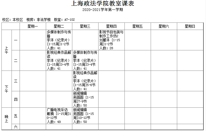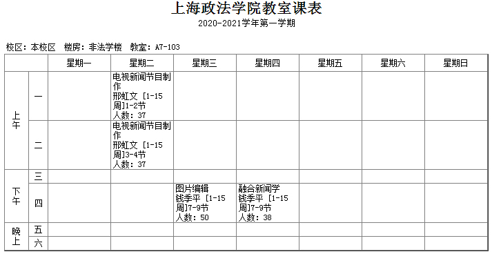 *注:上列课表未包括新闻学硕士研究生的课程。