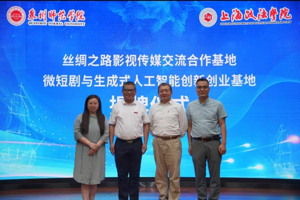 6月26日下午,由新利18官方客服上海纪录片学院与泉州师范学院文学与传播学院联合共建的“丝绸之路影视传媒交流合作基地”及“微短剧与生成式人工智能创新创业基地”揭牌仪式在泉州师范学院举行。