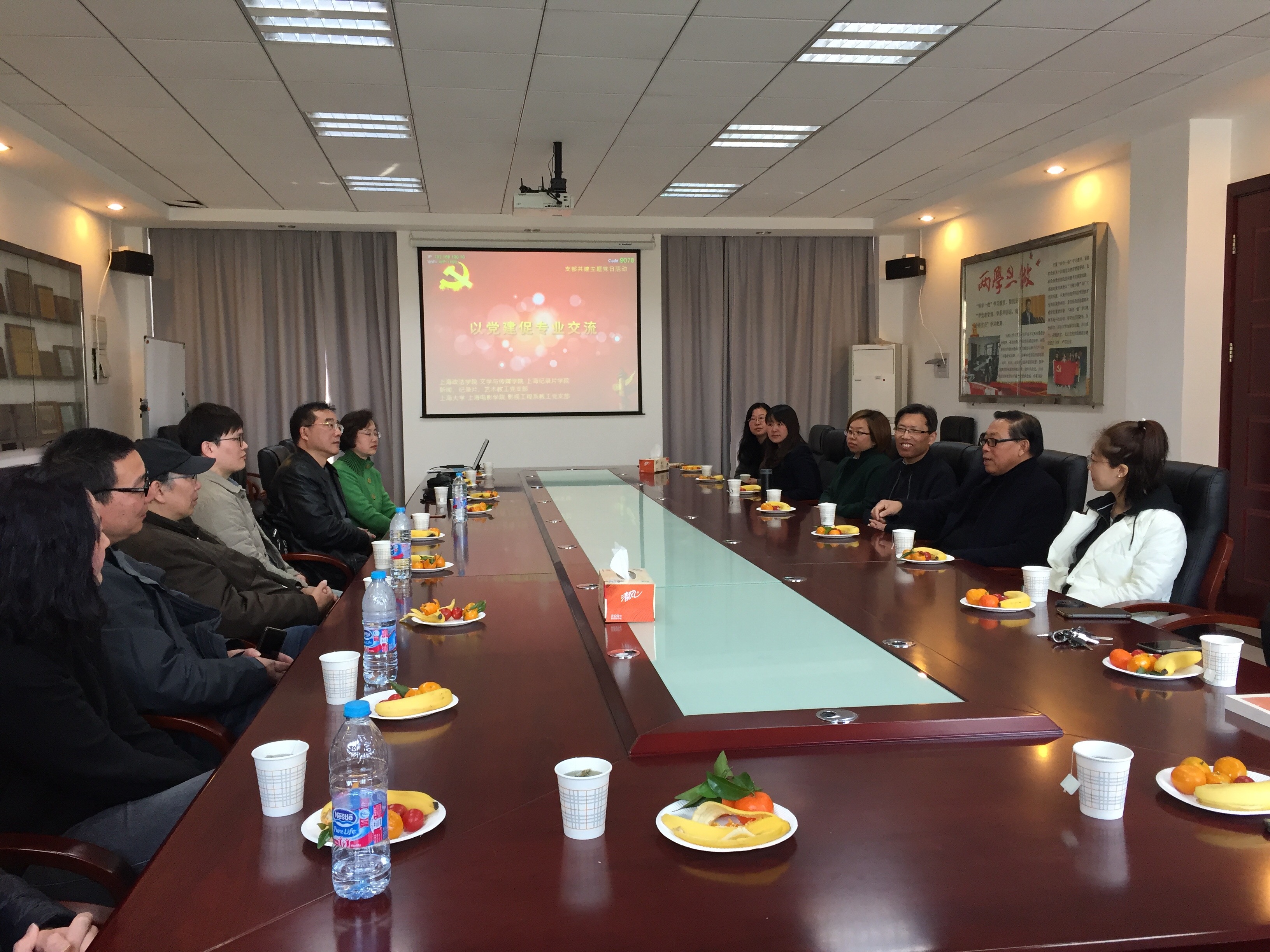 2018年3月23日,上海大学上海电影学院影视工程系教工党支部与我校上海纪录片学院新闻、纪录片、艺术教工党支部开展支部共建活动。本次活动由上海纪录片学院新闻、纪录片、艺术教工党支部书记邢虹文教授主持,文学与传媒学院-上海纪录片学院党总支书记郭斌、上海纪录片学院负责人戴元光教授、新闻、纪录片、艺术教工党支部部分教工党员参加此次活动。