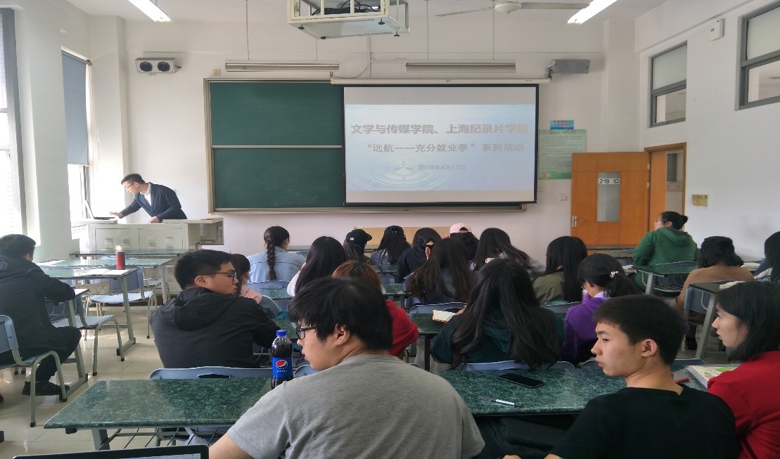 为了助力就业季中的毕业生,帮助学生提高在就业面试中的应试能力。文学与传媒学院、上海纪录片学院于2018年4月17日下午在主教218C举办了“远航——充分就业季”系列活动之面试技巧主题讲座。此次讲座邀请知名公*资深面试讲师华磊为主讲人,学院学生辅导员李洋、刘逸君、邢文馨出席讲座,大一至大四同学均踊跃参加。