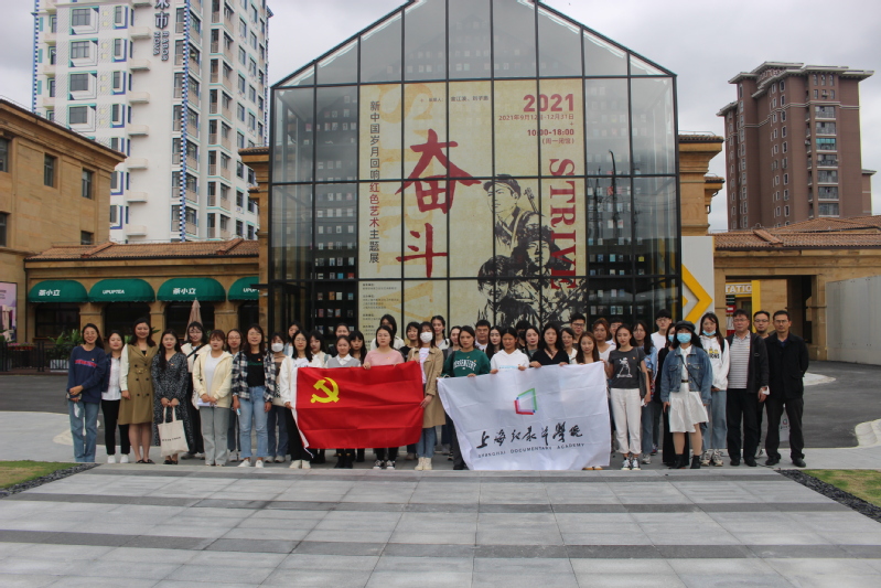 为深入学习贯彻习近平总书记在庆祝中国共产党成立100周年大会上的重要讲话精神,传承弘扬伟大建党精神,推进党史学习教育走深走实,扎实做好“我为群众办实事”实践活动,持续凝聚共建合力助推学生成长成才, 10月12日下午,新利18官方客服纪录片学院党总支组织师生党员赴上海艺术百代美术馆参观“奋斗——新中国岁月回响”红色艺术主题展,并商讨学院学生课外实习实践基地和志愿服务基地建设相关事宜。上海艺术百代美术馆馆长助理金明、纪录片学院党总支书记杨田宏、副书记马洪亮及组织员、辅导员、学生党员骨干40余人参加。