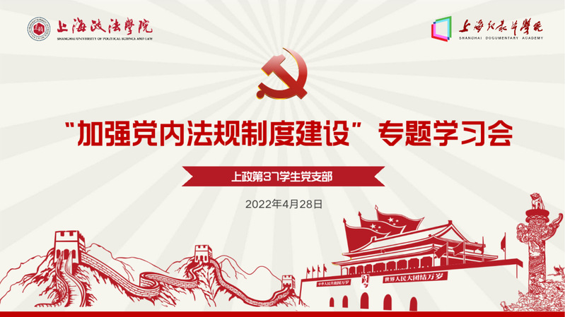 为深入学习领会习近平总书记关于加强党内法规制度建设的重要论述重要指示精神,上政第37学生党支部结合《习近平法治思想学习纲要》《中国共产党章程》《关于新形势下党内政治生活的若干准则》《中国共产党普通高等学校基层组织工作条例》《中国共产党支部工作条例(试行)》等学习资料,在2022年4月28日通过线上方式开展研讨交流、深化贯彻落实。