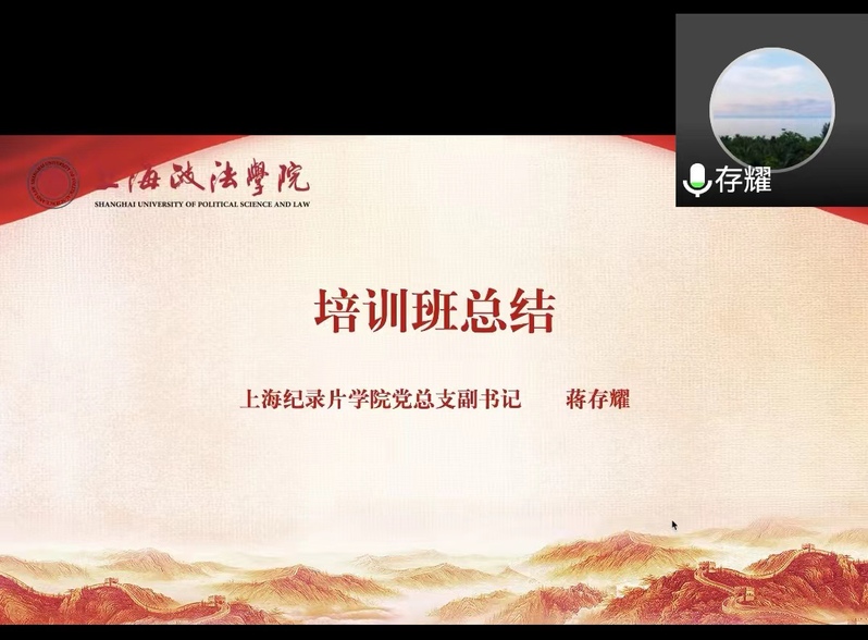 2022年5月17日下午,校党委党校第5期入党积极分子培训班结业典礼在线举行。上海纪录片学院党总支副书记蒋存耀、组织员赖洁珊以及培训班全体学员参加。本次结业典礼由赖洁珊主持。