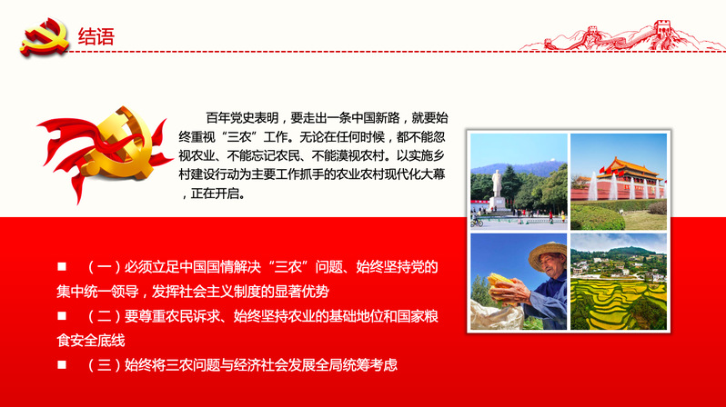 “务农重本,国之大纲”,历史和现实告诉我们,农为邦本,本固邦宁。为全面建成社会主义现代化强国,实现中华民族的伟大复兴,离不开农业农村建设,离不开乡村振兴发展。在中国共产党百年来对“三农”工作的领导实践下,亿万农民成功实现了翻身解放、解决温饱、摆脱贫困、全面小康的历史性跨越。如今迈向第二个百年奋斗目标的新征程,我们需从中国共产党领导的百年农史中汲取经验,赓续精神力量奋勇前行。(上政第37学生党支部 撰稿)