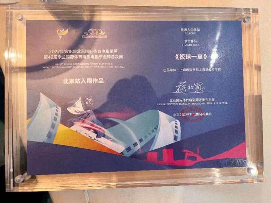 2022年8月,由上海纪录片学院姚久扬老师带队指导,学生杨宇、蔡相源、王珩瑾等拍摄的纪录片《板球一夏》入围第18届国际体育电影电视节全球总决赛(北京站)学生作品单元,并将赴意大利参加第40届米兰国际体育电影电视节全球总决赛。