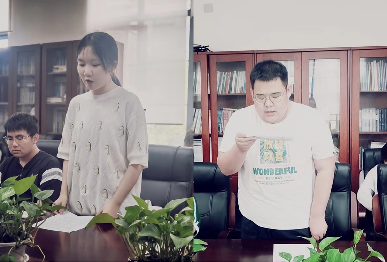 曹乃文、高森分别作为本科、研究生毕业生党员代表发言。曹乃文表示,出生成长于浙江嘉兴,在“红船精神”沐浴下的自己,很荣幸能在大学期间加入党组织。作为一名摄影摄像专业的学生,四年里一直用实际行动传承红色基因,赓续红色血脉,未来将继续努力进取,矢志拼搏奋斗,在工作岗位上奉献力量。高森表示在学院及支部的工作经历是他研究生生涯浓墨重彩的一笔。在新征程上,作为毕业生党员,要主动拒绝“躺平”诱惑,以“强国有我”的信念、“青松挺且直”的意气、“有如扶桑初日升”的朝气、“再多磨难也无惧”的锐气,撸起袖子加油干、风雨无阻向前行。