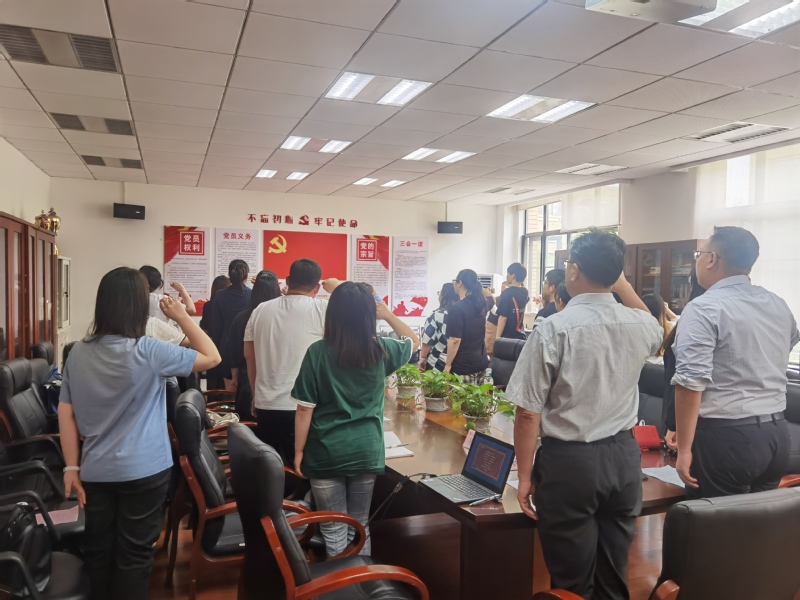 毕业生党员代表施璐萍带领与会党员庄严地举起右手,面向党旗,重温入党誓词,涤荡初心使命。