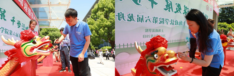 校党委书记葛卫华,党委副书记、校长刘晓红等学校党政领导班子出席开幕式并为比赛划船开道,各职能部门、二级学院党政领导和师生代表参加开幕式并现场观赛。葛卫华、刘晓红共同为龙舟点睛,饱含着祝福祖国、祝福上政的美好期盼。
