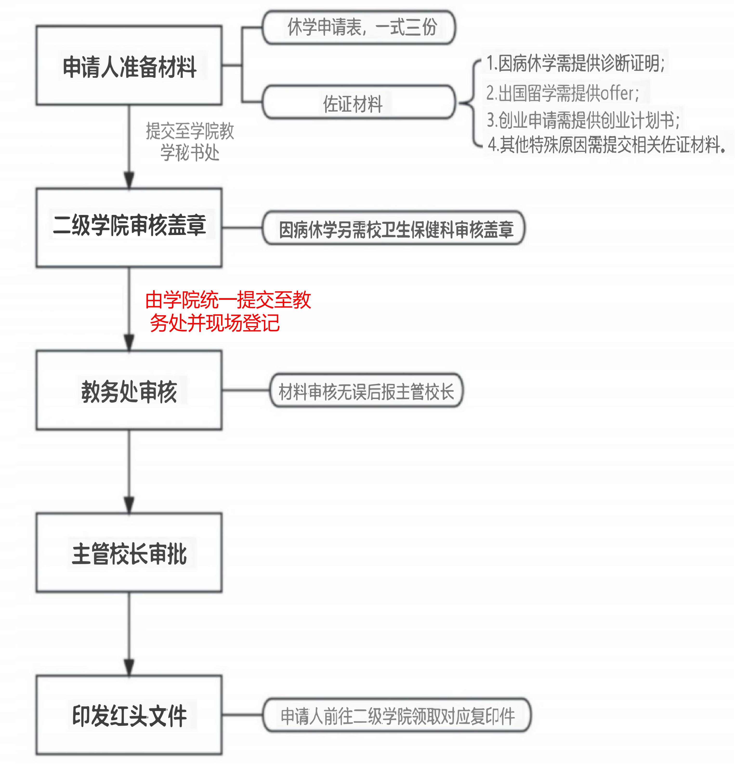 9.学生休学期满,应当在期满前一个月向学生所在学院提出复学申请,经教务处审核,报主管校长审批后方可复学。因病休学的学生,申请复学时还须持二级甲等以上医院诊断、确认其恢复健康的证明,并经学校卫生保健科复查合格。