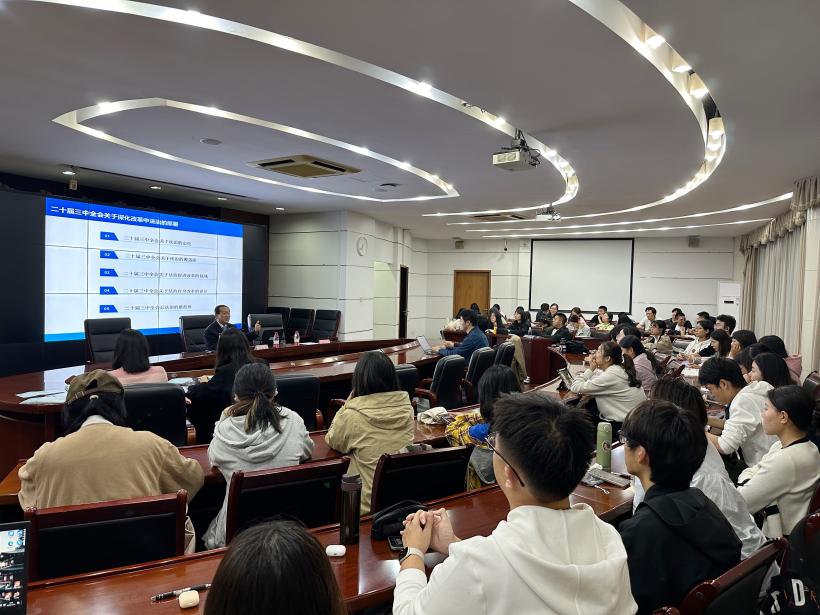 关保英从法治的定位、法治的覆盖面、法治促进改革的视域、关于法治自身改革的设计、法治的新趋势五方面讲解了二十届三中全会中关于法治的内容,并提出了趋于大数据的引入、部门法的跨越、弘扬给付精神、本土化与全球化的平衡、法治话语体系与知识体系重构等问题的新思考,引人深思。关保英寄语法学新生多参与学术交流,鼓励同学们在交流中获取知识、产生思想、解决问题。