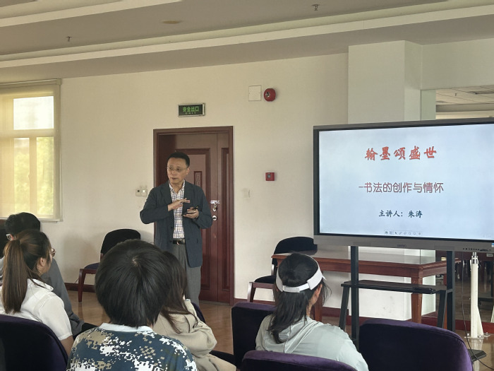 朱涛老师以深厚的学养和丰富的创作经验,深入浅出地阐述了书法的独特魅力和创作真谛。讲座内容涵盖了书法学习的方法、创作的要领以及如何通过书法作品表达情感等多个方面,既有理论高度,又兼具实践指导意义。