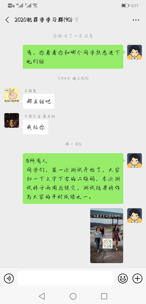 为保障教学质量,我们警务学院社区矫正教研室的老师不谋而合地使用了“线下录音、线上教学”的网课教学模式,采用“oCam”、“ZD Soft Recorder”以及PPT自带的录制功能对网课进行录制,并通过学习通平台上传相关网络视频和课程资料等。虽然在课堂内容上少了一些互动环节,但是教学课程内容更加丰富。并且,由于录像不支持互动,这反倒在客观上促进了线下同学与任课教师之间的互动。以刘泽鑫老师所讲授的犯罪学为例,为促进师生间、学生间的互动,刘泽鑫老师通过微信建群,并在犯罪学微信群内对学生进行分组,以完成本门课程所必须的讨论。