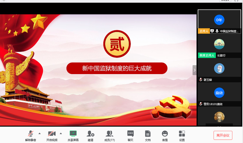 为丰富“四史”学习教育活动形式,激发广大党员群众学“四史”的热情,5月26日下午,警务学院教工党支部和上政第24学生支部以举办线上讲座的形式联合开展“从历史中汲取精神力量、汲取经验智慧、汲取坚守人民立场的定力,为奋力夺取疫情防控和实现经济社会发展目标双胜利提供强大思想保障”主题党日活动。邀请警务学院退休党员贾洛川教授开展“新中国监狱制度70年的伟大历程、巨大成就和发展完善”主题讲座。警务学院全体党员和积极分子聆听了本次讲座。讲座由警务学院党总支书记马小娜主持。