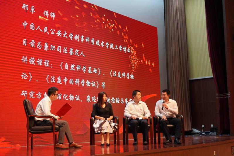 第二篇章“阔步复兴征程,展望盛世中国”。钱学森、邓稼先等科学家用智慧、青春和热血,创造了“两弹一星”功勋伟业,也创造了“热爱祖国,无私奉献,自力更生,艰苦奋斗,大力协同,勇于攀登”的“两弹一星”精神。警务学院教工党支部书记冯秋迪与我院法庭科学的王欣老师、李备栩老师、邢卓老师围绕“两弹一星”精神展开交流访谈,表达了青年教师要传承好“两弹一星”精神,担起立德树人的使命,培养学生的创新精神,这也是警务学院全体教师的共同心声。