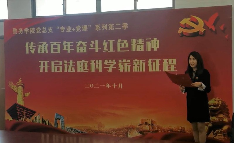 2021年9月30日,警务学院党总支“专业+党课”系列第二季《传承百年奋斗红色精神 开启法庭科学崭新征程》在法庭科学教研室王欣老师、邢卓老师、李备栩老师、刘珞晰老师的指导下在主教505A顺利开拍。