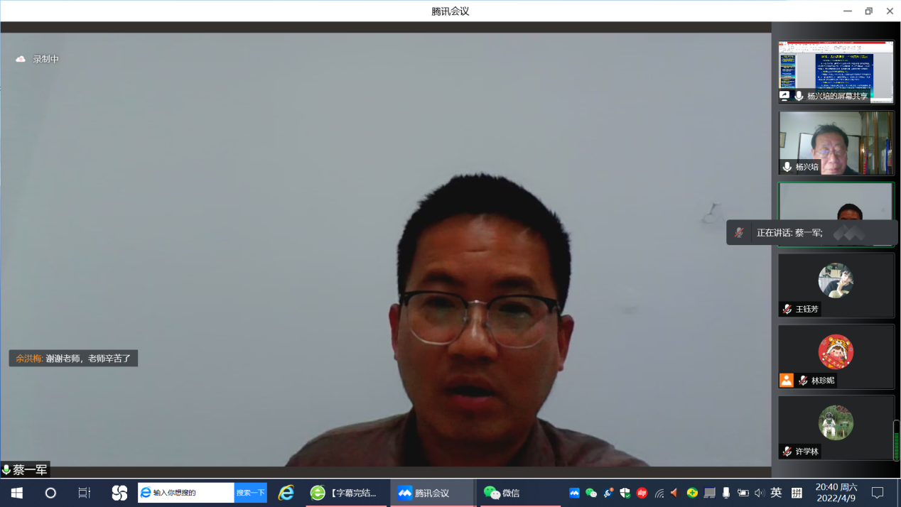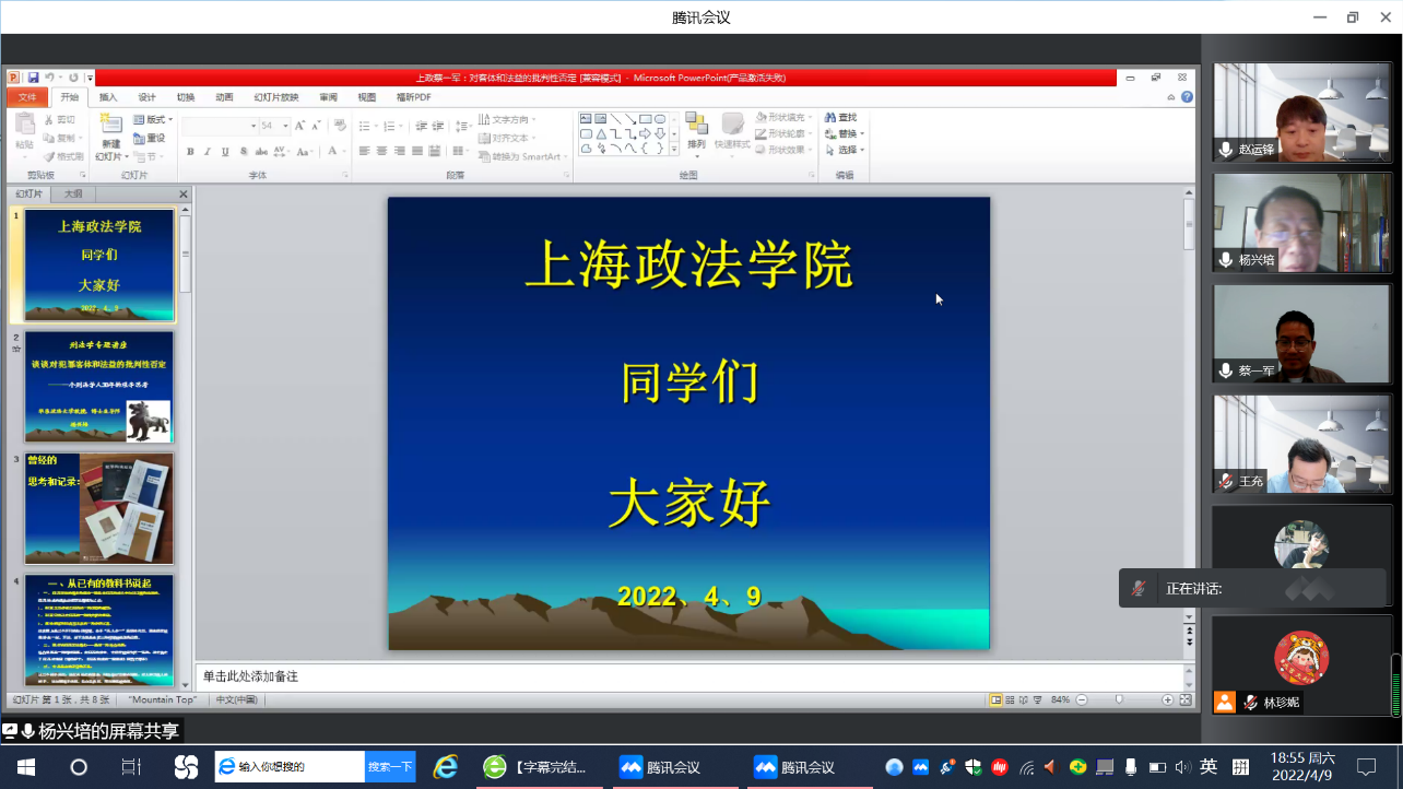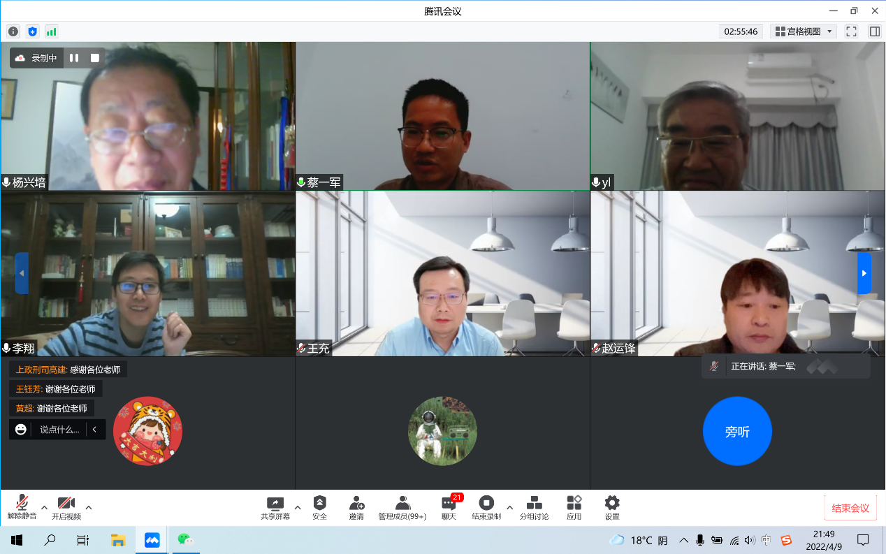 4月9日晚,华东政法大学教授杨兴培受邀做客我校“名家讲坛”第九十八讲,在线上为我校师生做“谈谈对犯罪客体和法益的批判性否定”学术讲座。讲座由新利18官方客服科研处和警务学院主办,警务学院院长蔡一军主持。华东政法大学发展规划处处长李翔教授,吉林大学法学院副院长王充教授,我校原副校长、终身教授闫立教授和科研处处长赵运锋教授共同参加与谈。两百余名校内外师生和实务界人士在线参与本次讲座。
