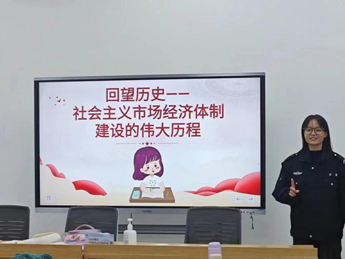 12月15日,警务学院红色先锋队志愿者前往江秋新苑开展“种一个红色种子 育一颗向党红心”系列活动第九辑,带领小朋友们回顾我国社会主义市场经济体制的建立过程。
